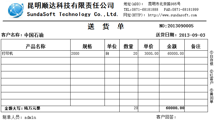 ◆送貨單格式多樣化:提供數(shù)十種送貨單格式供您選擇,格式不滿(mǎn)意可聯(lián)系客有免費(fèi)重新設(shè)計(jì);
